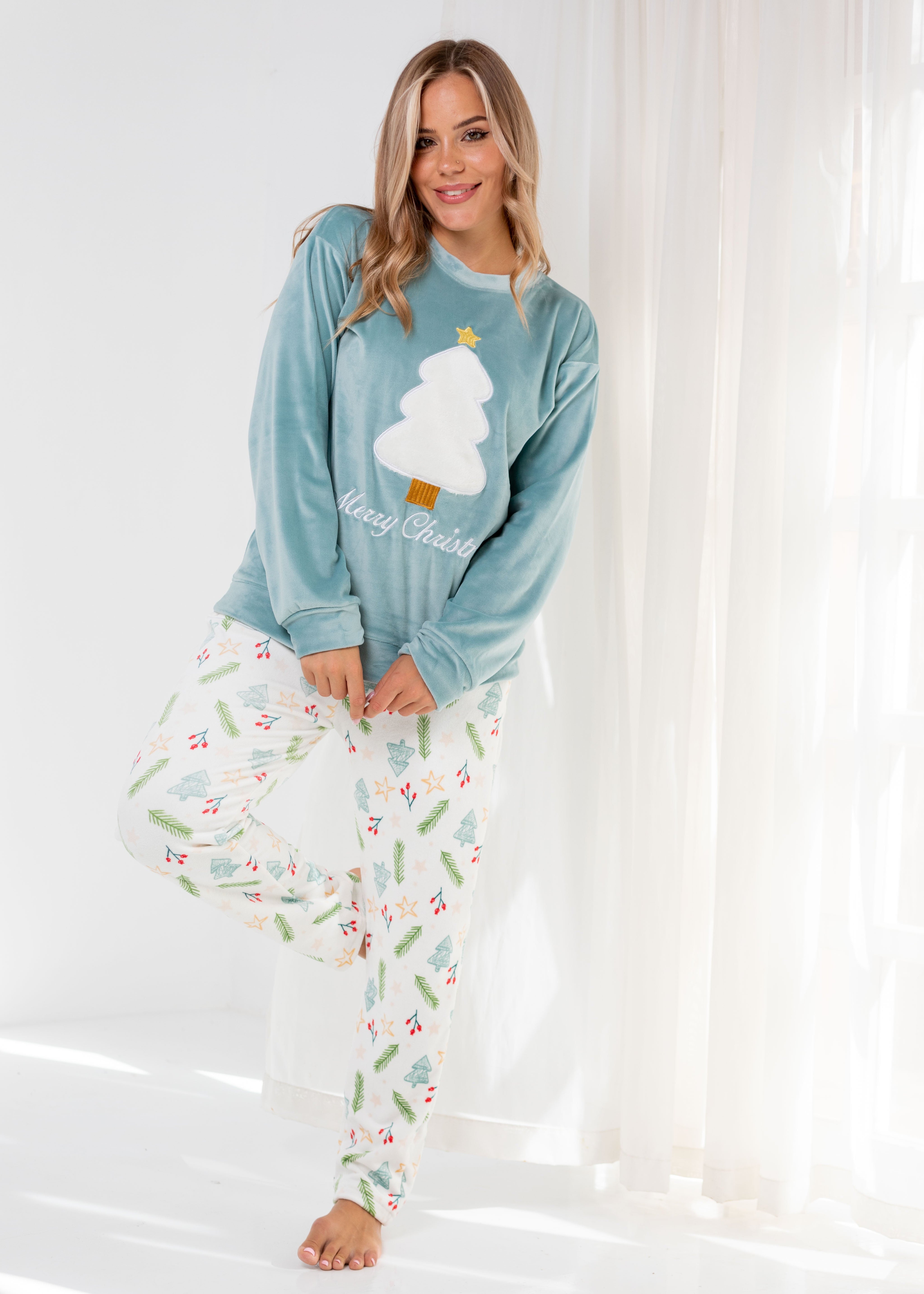 Celebrate the cozy season in style with Fulana’s Velvet Christmas Tree Pajama Set 🎄