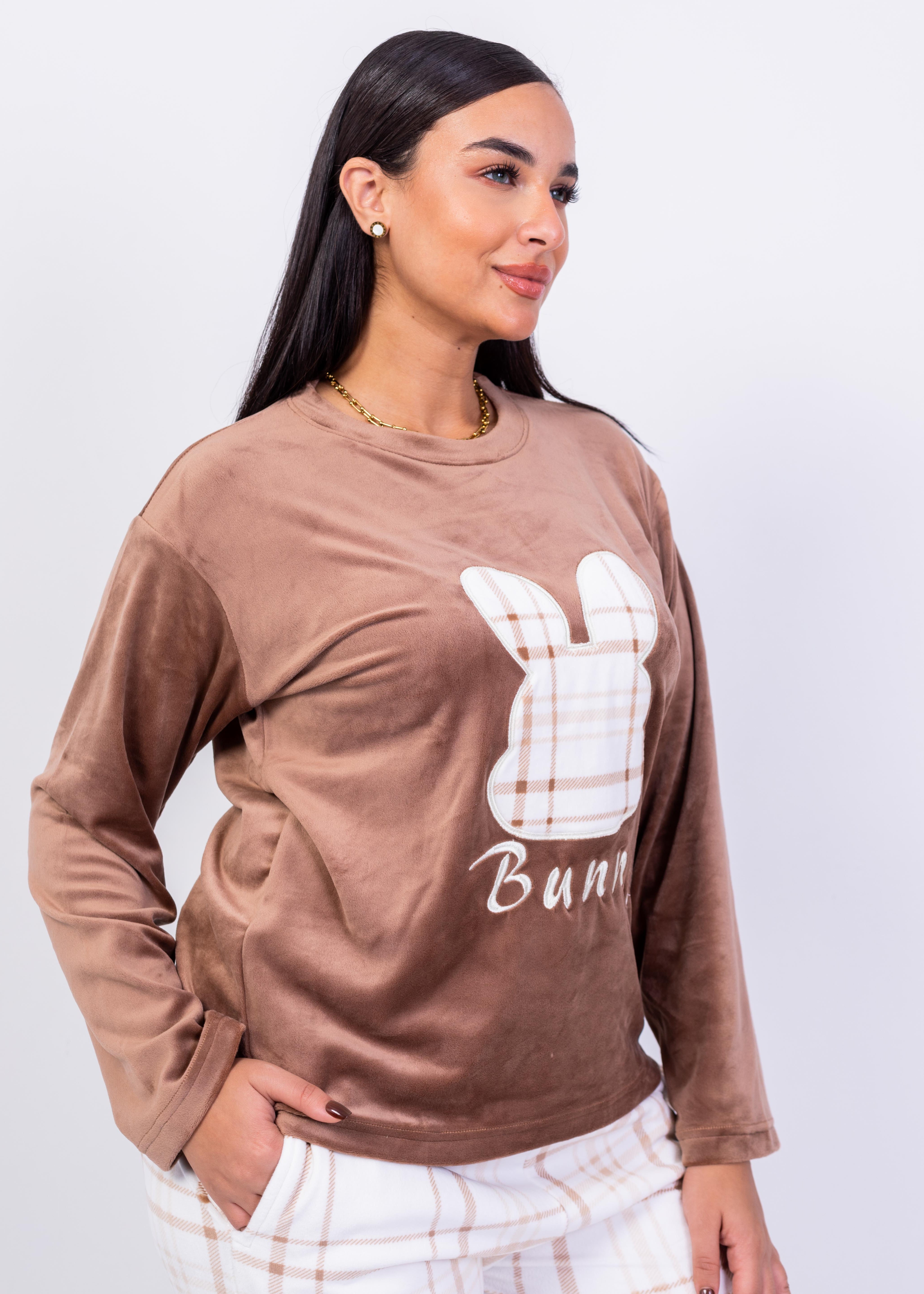 • Soft velvet top with bunny embroidery