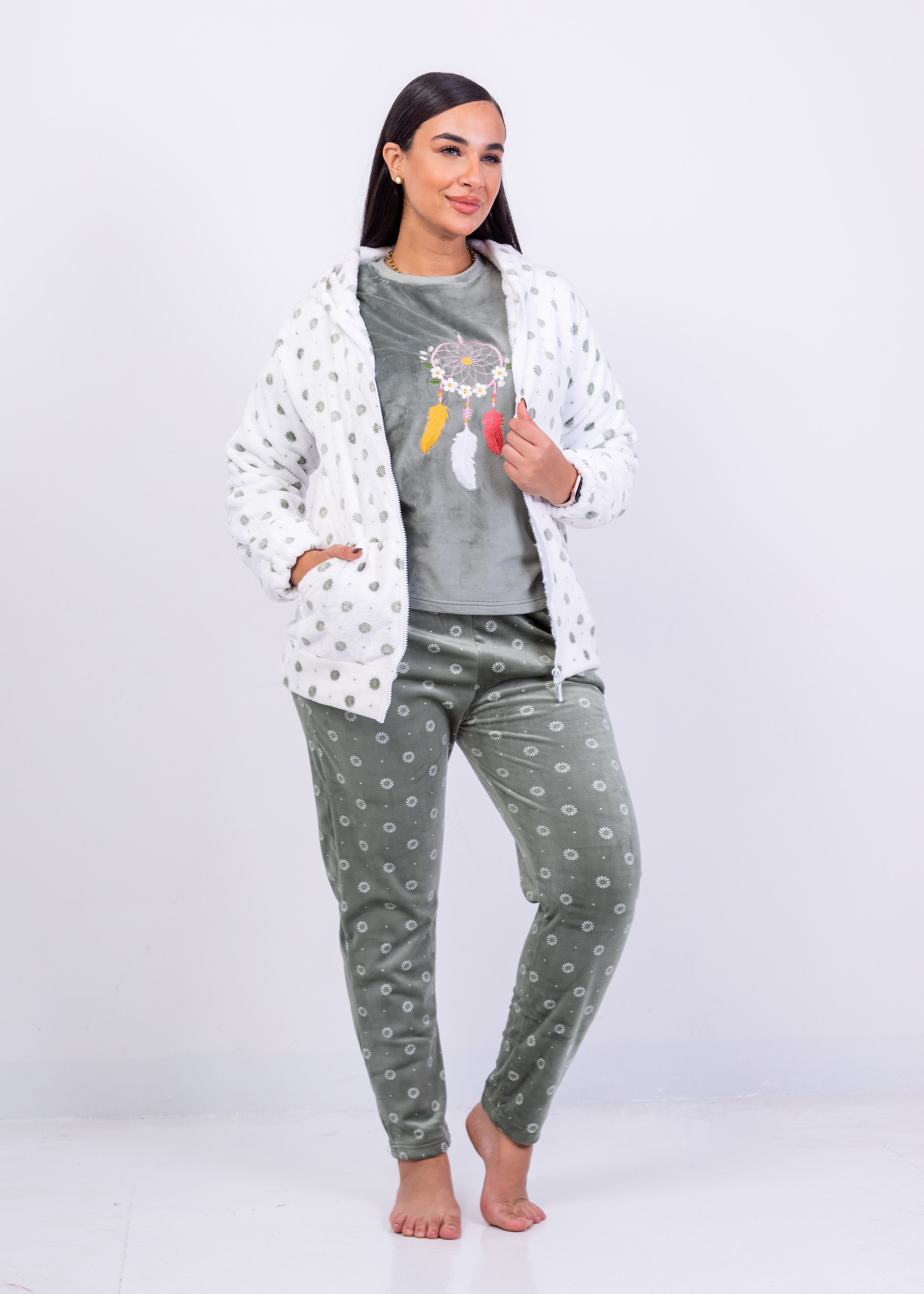 • Three-piece set (Top + Pants + Hooded Jacket)