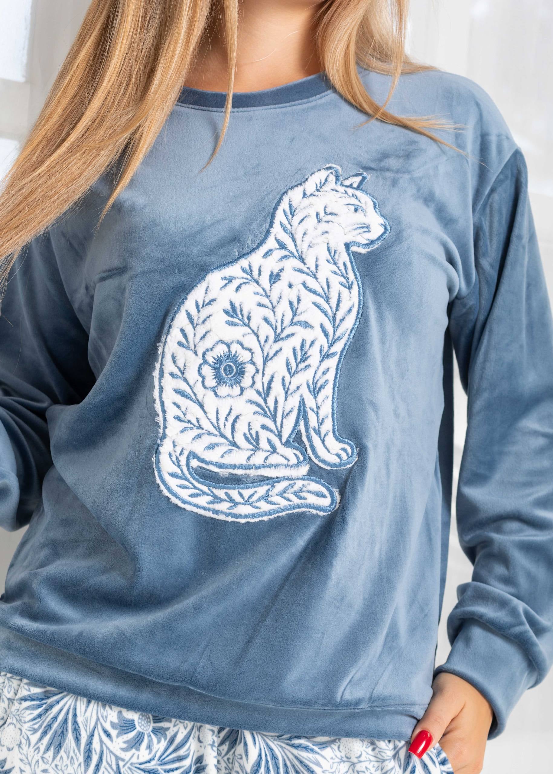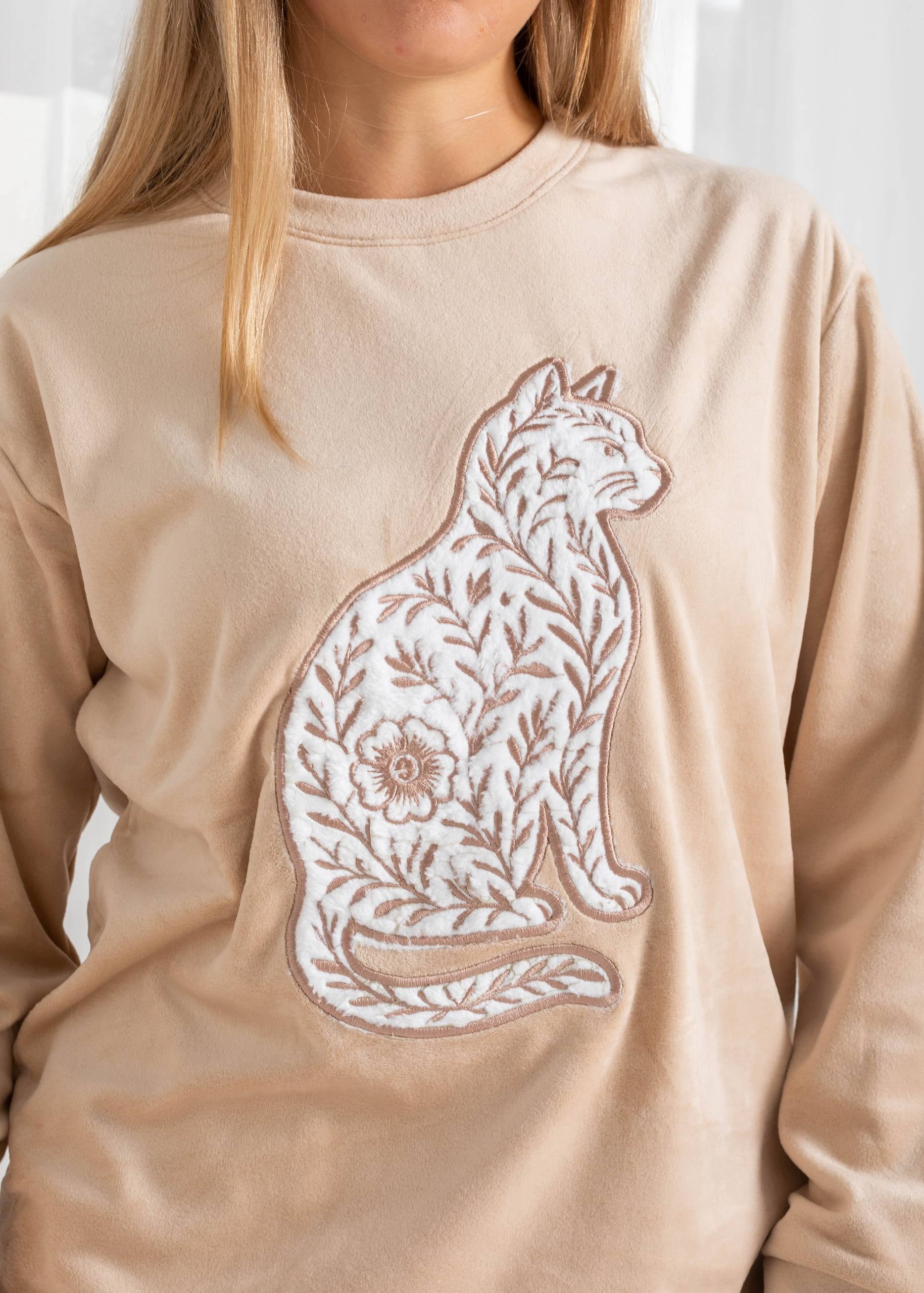 A perfect mix of softness, warmth, and trend — featuring a plush velvet top with a unique cat embroidery and printed floral pants for that effortlessly cute winter look.